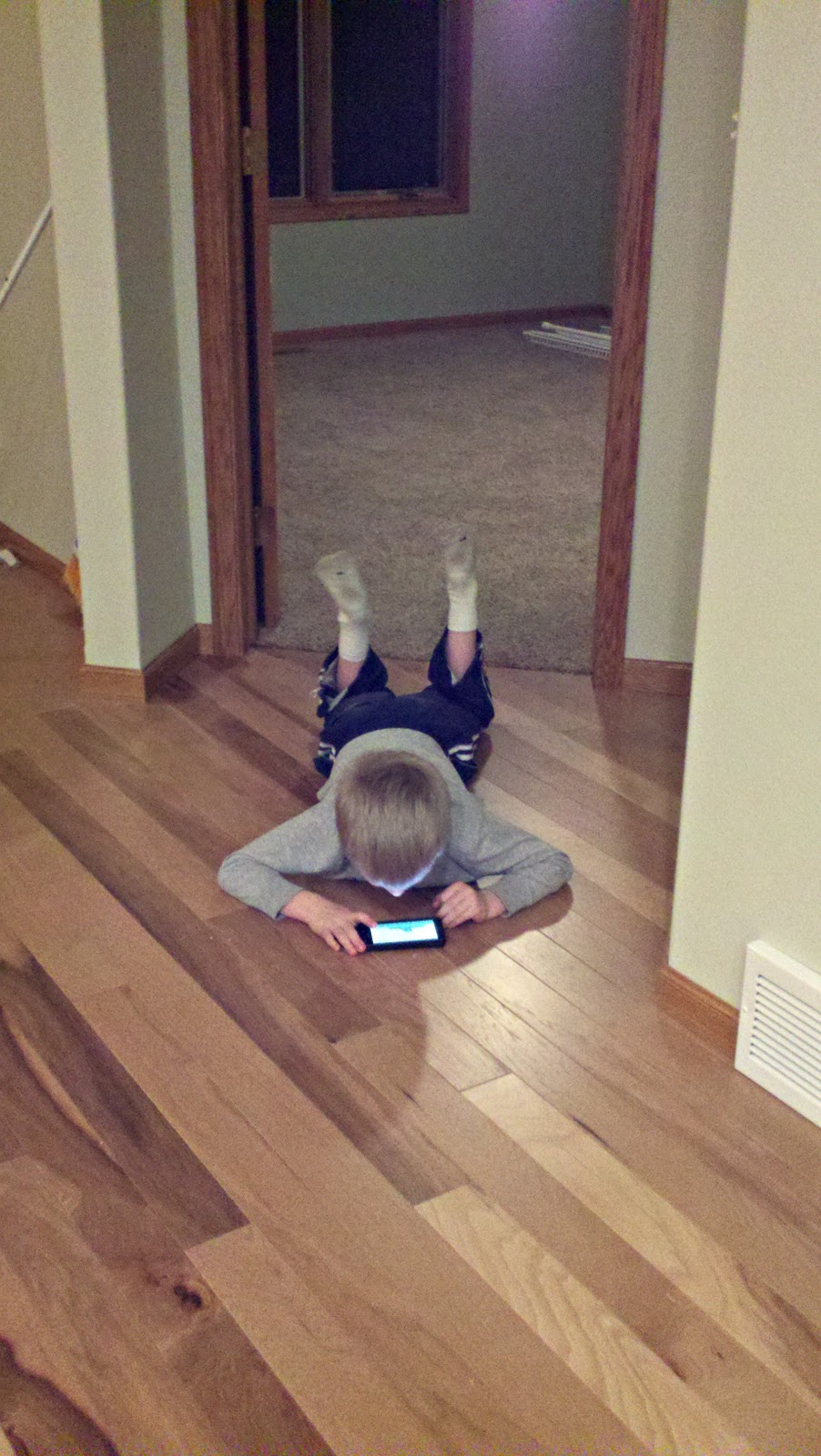 | Ben and Jen came up to stay at my parents' new vacation lake home 2 weekends ago. Dane and Nora joined them in a "cuddle puddle" during a Culver's lunch break. |